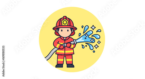 Cute Cartoon Firefighter Standing Ready for Duty in Bright Studio