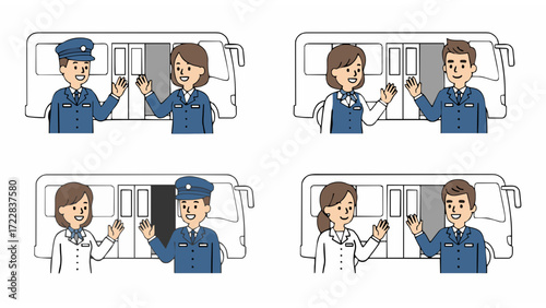 Illustration of a bus driver wearing a seatbelt, focusing on the steering wheel and interior, portraying safety and responsibility. Concept for public transportation, tourism services and driver