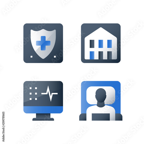 isometric set Medical Machine hospital diagnostic equipment healthcare technology isolated object 3d doctor