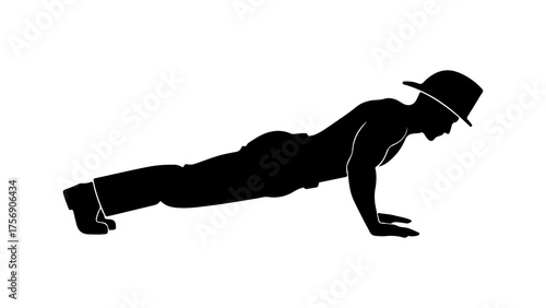 Silhouette of a man performing a push up exercise showcasing strength training and fitness in a clean graphic style on a white background