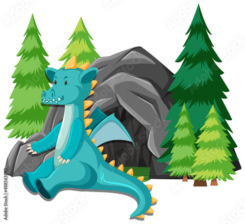 A mystical dragon's lair hidden deep within a mountain cavern. Vector flat minimalistic isolated illustration.