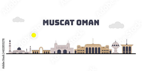 Muscat Oman cityscape skyline sketch illustration vector. Famous popular city in the world in colorful style.