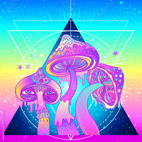 MultiColor trippy Mushroom design, vector illustration hallucinogenic fantasy
