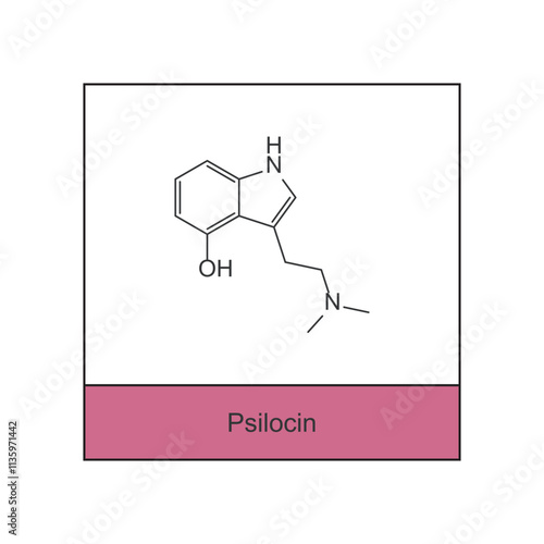 Psilocin skeletal structure diagram.psychedelic compound molecule scientific illustration.