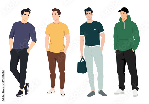 Stylish Men s Outfit Variations. A diverse set of men wearing stylish and well-coordinated outfits, featuring different tones, fabrics, and styles.