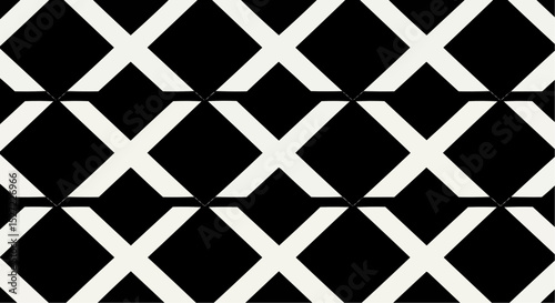 Seamless black and white geometric pattern of squares, rhombuses, and diamonds for modern textile and wallpaper design