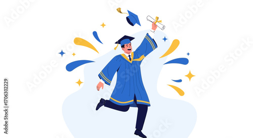 Illustrated celebration of academic success with graduation cap and diploma