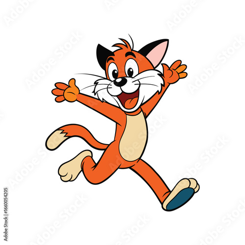 Animated fox character in playful pose, showcasing its orange and white fur, outlined in black against a clean white backdrop