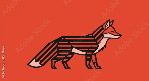 Stylized Fox Illustration with Geometric Stripes.