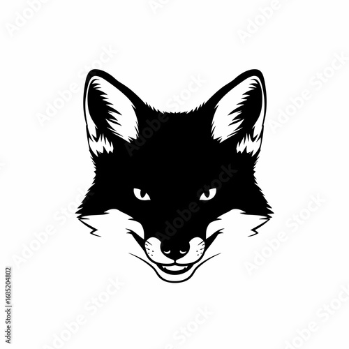 Detailed black and white fox face silhouette isolated on white background