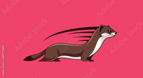 Brown stoat illustration alert posture side view.