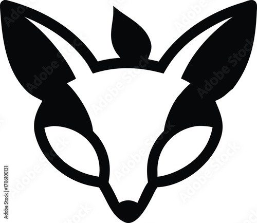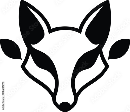 Stylized Black Fox Head Icon with Leaf Accents on White Background logo animal