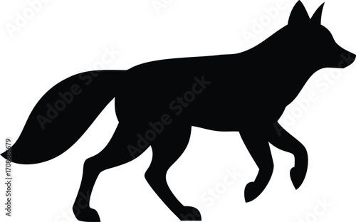 Stylized Black Fox Standing Profile Silhouette.