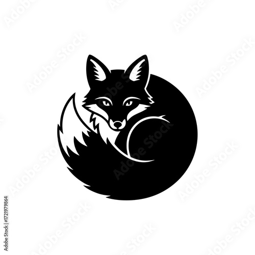 Vector art of black fox curled up in a circle