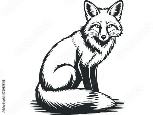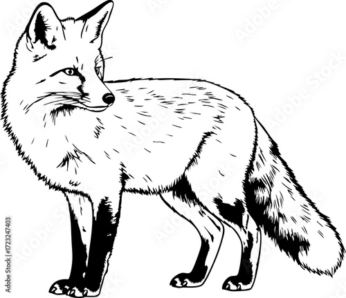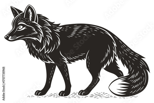 Stunning fox illustration poised alertly, a symbol of wildlife and nature, perfect for educational materials, logos, or branding, capturing wild beauty