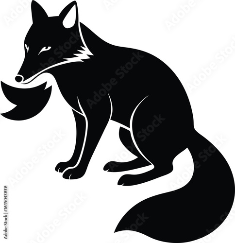 Black Fox Silhouette Holding Object: Minimalist Vector Art