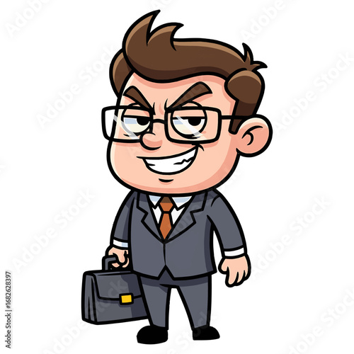 Funny Corporate Character with a Villainous or Clever Expression, Cartoon Graphic of an Entrepreneur Ready for a Business Deal, business, marketing, strategy, and even financial success.