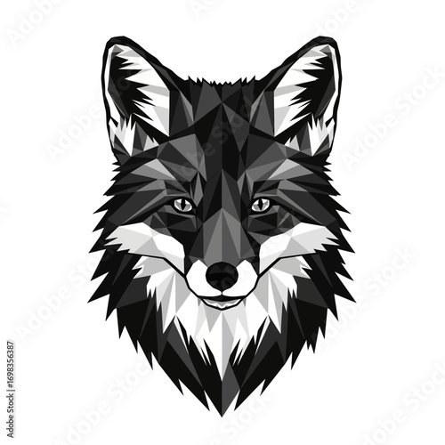 Geometric fox head silhouette isolated on white background