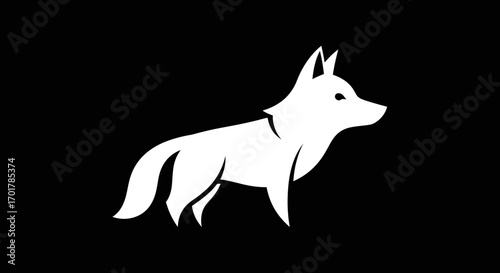 Elegant white fox silhouette on black background representing wilderness and nature.