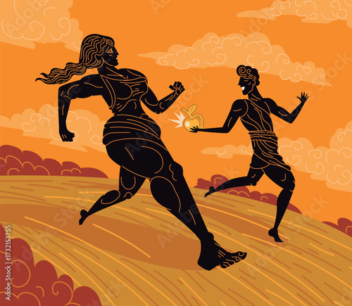 atalanta running with suitor throwing golden apple in race