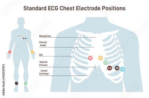 Position of ECG chest leads. Cardiovascular checkup with cardiogram.