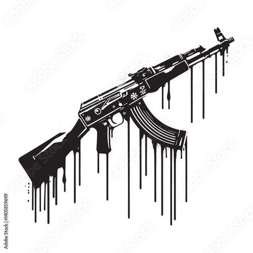 A detailed silhouette of an ak 47 assault rifle with a curved magazine and stock depicted clearly