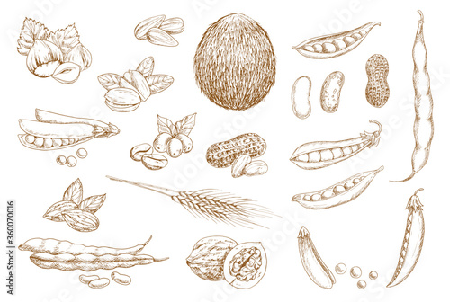 coconut set design template, fresh coconut in hand drawn, coconut pieces and whole coconut, coconut template vector
