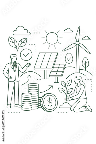 Green Energy Concept Illustration, Sustainability Environment, esg business