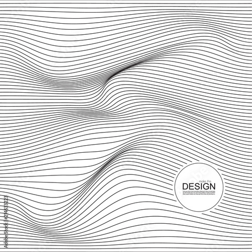 Distorted wave monochrome texture. Abstract dynamical rippled surface. Vector stripe  deformation background.