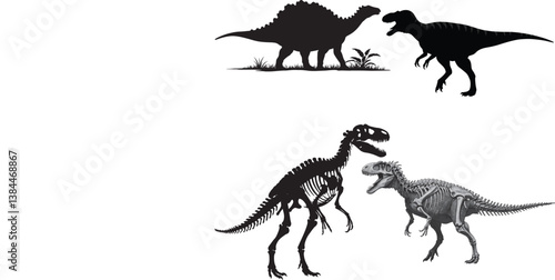 Tyrannosaurus rex skeleton, sauropod dinosaur bones, prehistoric anatomy, fossil illustration, bipedal theropod, quadrupedal sauropod, extinct species, paleontology, science, evolution, museum