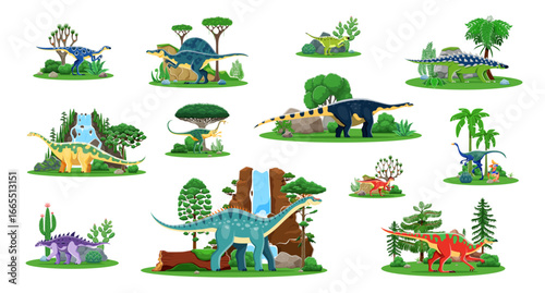 Colorful dinosaur collection: diverse prehistoric creatures in dynamic poses