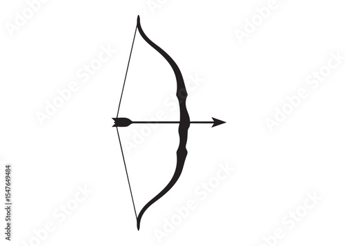 Classic Black and White Bow and Arrow Illustration: A Vintage Archery Symbol Evoking Strength, Precision, Hunting, Warrior Spirit, and Mythical Themes for Graphic Design Projects a