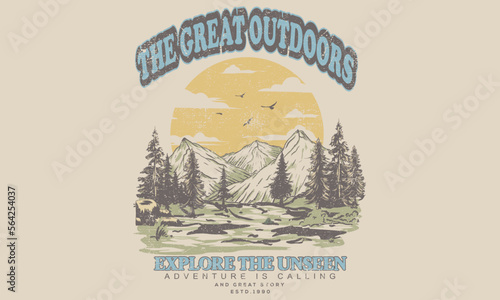 Mountain and sea illustration vector logo
