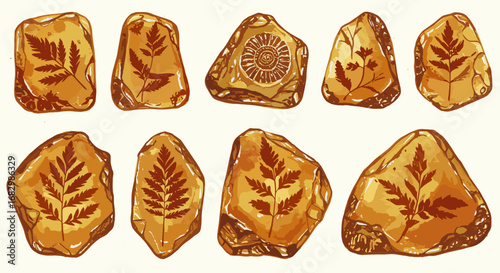 An illustrated collection of different rocks and stones in various shapes, sizes, and colors, ideal for nature, geology, and landscape design concepts.