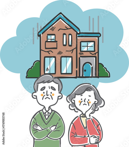 古い家をどうしようか悩むシニア夫婦 ベクター