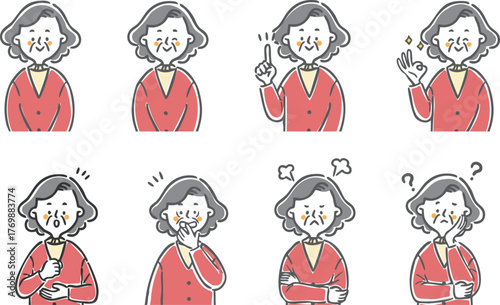 いろんな表情のシニア女性イラストセット 上半身 ベクター