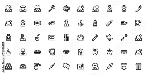 Dentist icon set. Dental vector illustrations. Featuing tools, procedures and ymbols for tooth, braces, entist, drill, x-ray, appontment and more. Editable troke.
