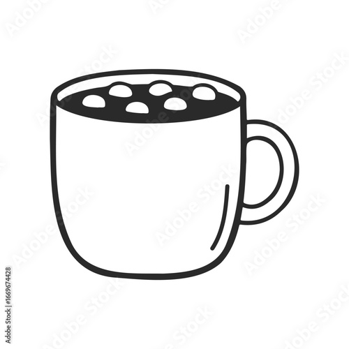 Hand-drawn illustration of a mug filled with hot chocolate and marshmallows