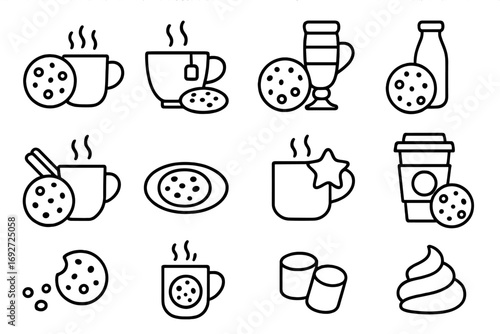 Marshmallows Mug icon set in flat and line style vectors