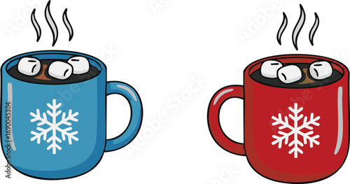 Illustration of mugs with hot chocolate and marshmallows, perfect for adding a cozy touch to your designs