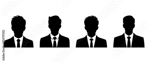 Professional businessman with suit and tie front view profile silhouette black filled vector Illustration icon