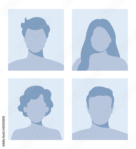 Man and woman empty avatars set. Default photo placeholder for social networks, resumes, forums and dating sites. Male and female no photo images for unfilled user profile. Vector illustration.