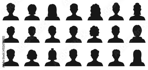 User profile avatar icon set, male and female silhouette, headshot placeholder, round frame, vector illustration for web and apps