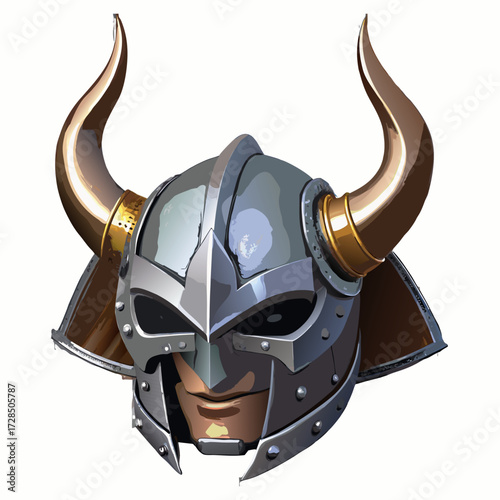Viking helmet. Futuristic Viking Warrior Helmet with Horns – Shiny Silver Battle Mask.