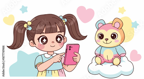 Children with smartphone. Vector illustration. Smartphones have become integral part studying and learning for school aged children The telephone has evolved into smart phone, powerful device