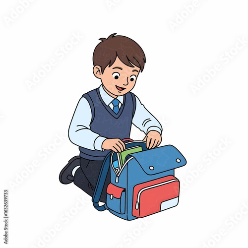 Cute little boy with magnifying glass exploring books educational illustration childrens cartoon drawing kid fun happy