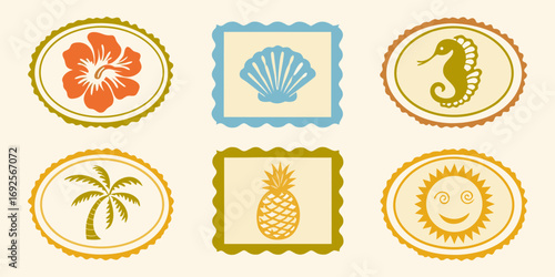 Vector logo and print design templates, summer palms, tropical hand drawn illustrations, tropical surfing concept, vacation and travel, palm trees and hippie boho elements