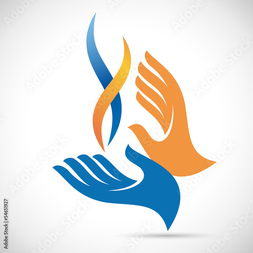 差し伸べる手とつながるハートの線画イラスト ー 協力・援助・救出のイメージ