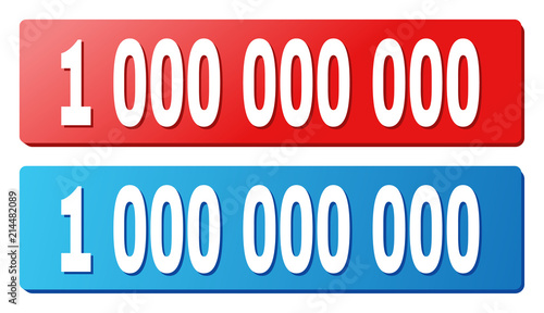 1 000 000 000 text on rounded rectangle buttons. Designed with white title with shadow and blue and red button colors.