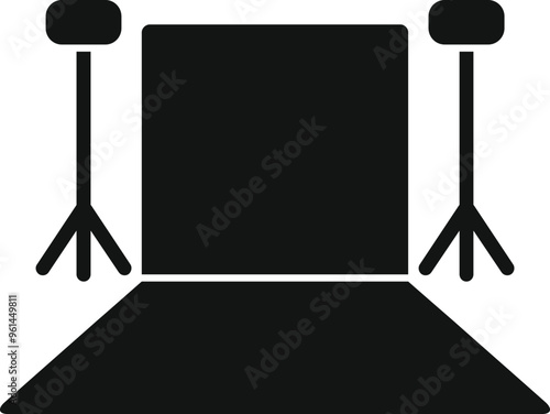 Simple icon representing a photo studio, with its lighting equipment and backdrop, ready for a professional photography session